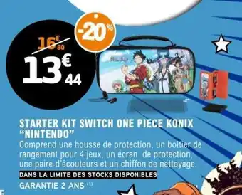 Actuellement en offre chez E.Leclerc : STARTER KIT SWITCH ONE PIECE KONIX 'NINTENDO' ✅ Valable du 7-02 au 6-03.