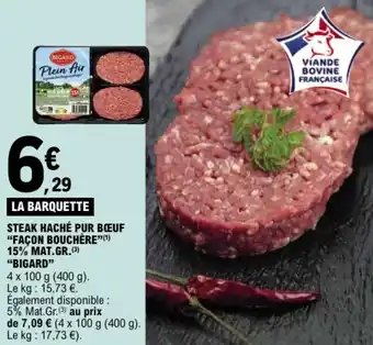 Offre Steak haché pur bœuf façon bouchere 15% mat.gr. bigard chez E.Leclerc