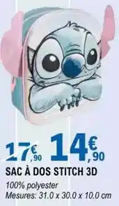 Actuellement en offre chez E.Leclerc : Stitch - sac à dos 3d ✅ Valable du 13-01 au 25-01.