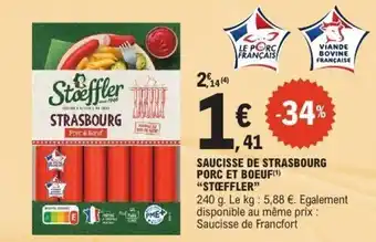 Actuellement en offre chez E.Leclerc : STŒFFLER Saucisse de strasbourg porc et boeuf ✅ Valable du 13-01 au 24-01.