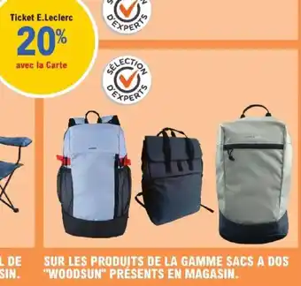 Offre SUR LES PRODUITS DE LA GAMME SACS A DOS WOODSUN PRÉSENTS EN MAGASIN. chez E.Leclerc