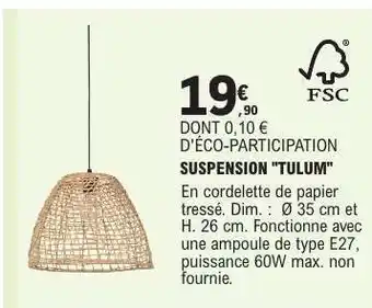 Actuellement en offre chez E.Leclerc : SUSPENSION TULUM ✅ Valable du 20-01 au 21-02.