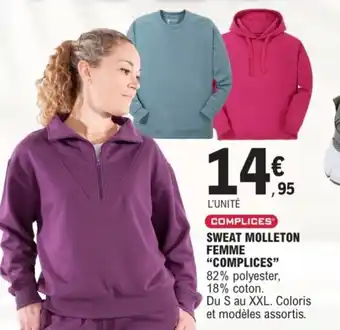 Actuellement en offre chez E.Leclerc : Sweat molleton femme complices ✅ Valable du 21-04 au 3-05.