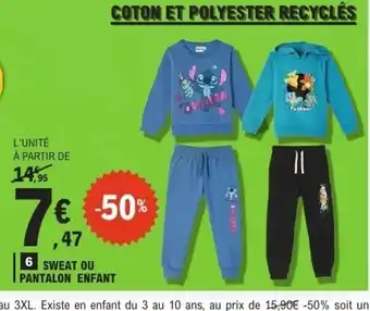 Actuellement en offre chez E.Leclerc : Sweat ou pantalon enfant ✅ Valable du 13-01 au 24-01.