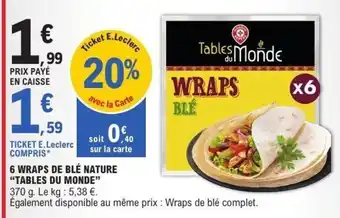 Actuellement en offre chez E.Leclerc : TABLES DU MONDE 6 wraps de blé nature ✅ Valable du 3-03 au 14-03.
