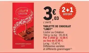 Actuellement en offre chez E.Leclerc : TABLETTE DE CHOCOLAT LINDT ✅ Valable du 24-02 au 7-03.