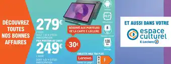 Actuellement en offre chez E.Leclerc : Tablette idea tab plus lenovo ✅ Valable du 3-02 au 14-02.