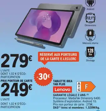 Actuellement en offre chez E.Leclerc : Tablette idea tab plus lenovo ✅ Valable du 3-02 au 14-02.