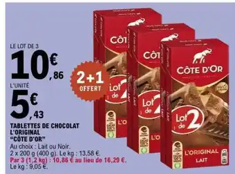TABLETTES DE CHOCOLAT L'ORIGINAL CÔTE D'OR offres et promotions en ligne chez E.Leclerc