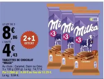 Actuellement en offre chez E.Leclerc : Tablettes de chocolat 'Milka' ✅ Valable du 3-02 au 14-02.