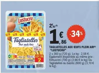 Actuellement en offre chez E.Leclerc : TAGLIATELLES AUX ŒUFS PLEIN AIR “LUSTUCRU” ✅ Valable du 20-01 au 31-01.