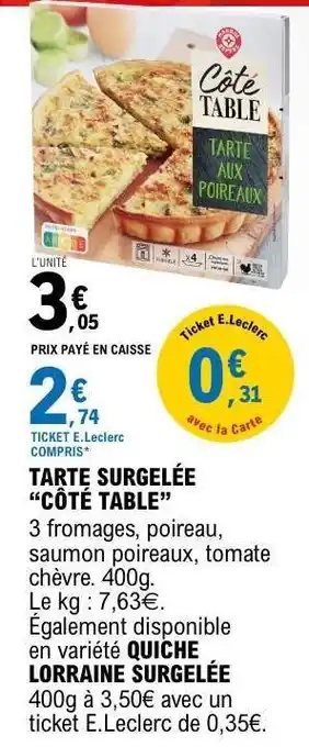 Y a-t-il une promotion sur TARTE SURGELÉE “CÔTÉ TABLE” la semaine prochaine chez E.Leclerc ?