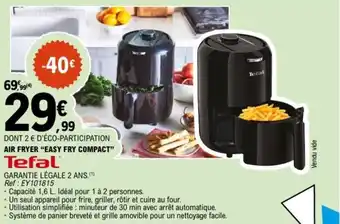 Offre TEFAL Air fryer easy fry compact chez E.Leclerc