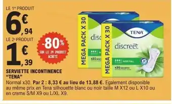 Actuellement en offre chez E.Leclerc : TENA Serviette incontinence ✅ Valable du 13-01 au 24-01.