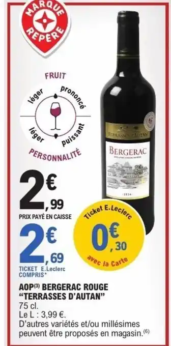 TERRASSES D'AUTAN Aop bergerac rouge offres et promotions en ligne chez E.Leclerc