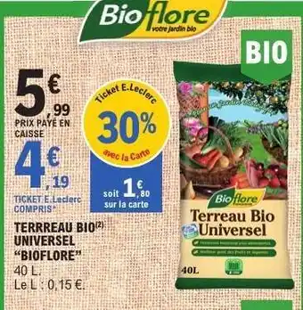 Actuellement en offre chez E.Leclerc : TERREAU BIO UNIVERSEL “BIOFLORE” ✅ Valable du 14-04 au 25-04.
