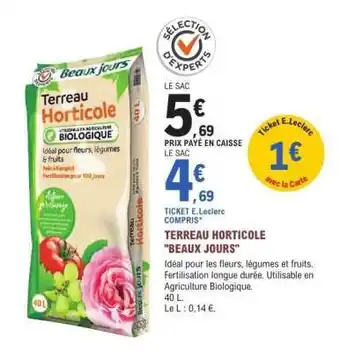 TERREAU HORTICOLE BEAUX JOURS offres et promotions en ligne chez E.Leclerc