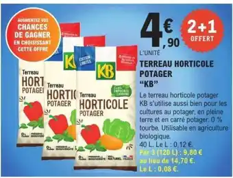 Actuellement en offre chez E.Leclerc : TERREAU HORTICOLE POTAGER KB ✅ Valable du 21-04 au 9-05.