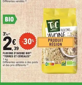 Offre TERRES ET CÉRÉALES Flocons d'avoine bio chez E.Leclerc