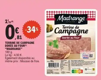 Actuellement en offre chez E.Leclerc : TERRINE DE CAMPAGNE DORÉE AU FOUR ✅ Valable du 3-03 au 14-03.