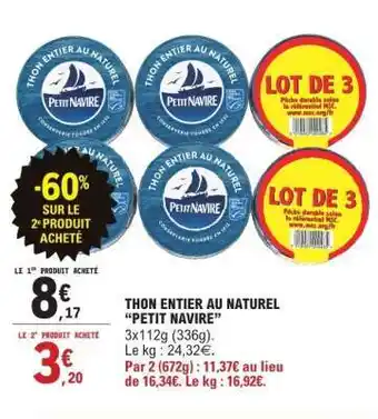 Offre Thon entier au naturel 'Petit Navire' chez E.Leclerc