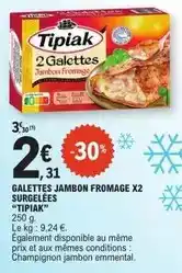 Actuellement en offre chez E.Leclerc : Tipiak - galettes jambon fromage x2 surgelées ✅ Valable du 18-02 au 1-03.
