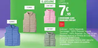 Actuellement en offre chez E.Leclerc : Tissaia doudoune sans manches enfant ✅ Valable du 10-03 au 21-03.