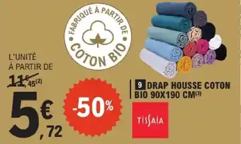 Actuellement en offre chez E.Leclerc : Tissaia drap housse coton bio ✅ Valable du 24-02 au 7-03.