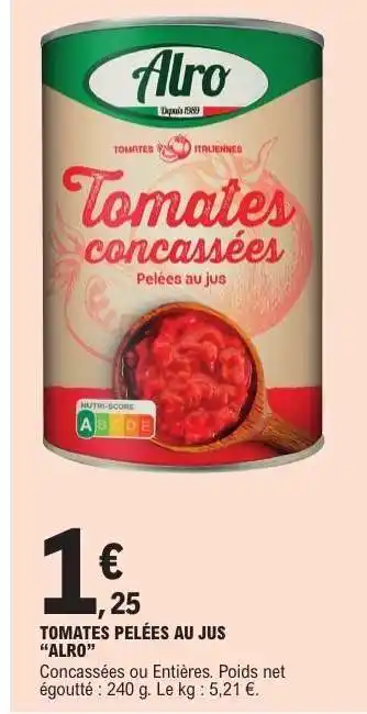 Offre Tomates pelées au jus Alro chez E.Leclerc