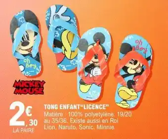 Actuellement en offre chez E.Leclerc : TONG ENFANT 'LICENCE' ✅ Valable du 10-02 au 22-02.