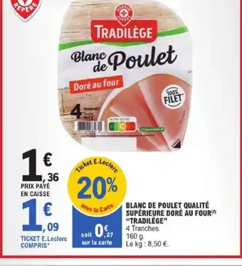 TRADILÈGE Blanc de poulet qualité supérieure doré au four : offres et promos E.Leclerc à découvrir