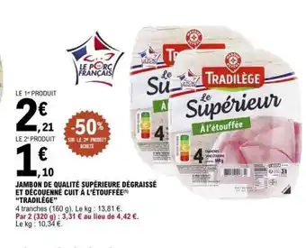 L'offre est disponible dans plusieurs magasins, vérifiez tous les produits pour obtenir le Tradilège Le Supérieur A l'étouffée le moins cher. Si vous souhaitez savoir si l'article est en vente avec une plus grosse remise dans un autre magasin, consultez la catégorie 'Supermarché'. Ces offres pourraient aussi vous intéresser : Fleury michon - jambon le supérieur à l'etouffee, Jambon Le Supérieur à l'Etouffée Fleury Michon & FLEURY MICHON Jambon Le Supérieur à l'Etouffée.