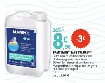 En plus de l'offre TRAITEMENT SANS CHLORE, E.Leclerc propose une large gamme de produits. Consultez le Catalogue E.Leclerc hebdomadaire pour découvrir les meilleures offres et promotions. En plus de TRAITEMENT SANS CHLORE, il y a aussi : MARINA Traitement sans chlore, TRAITEMENT & TRAITEMENT.