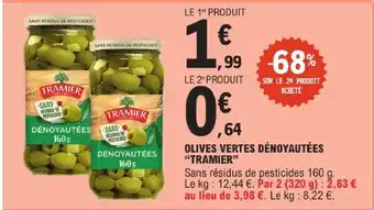 Actuellement en offre chez E.Leclerc : Tramier olives vertes dénoyautées ✅ Valable du 24-02 au 7-03.