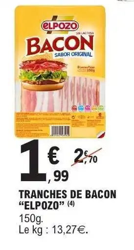 Actuellement en offre chez E.Leclerc : TRANCHES DE BACON “ELPOZO” ✅ Valable du 27-01 au 8-02.
