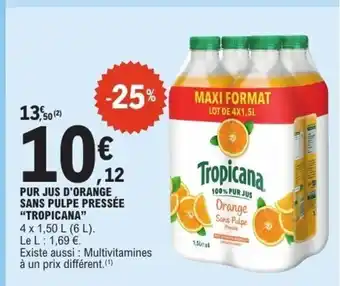TROPICANA Pur jus d'orange sans pulpe pressée offres et promotions en ligne chez E.Leclerc