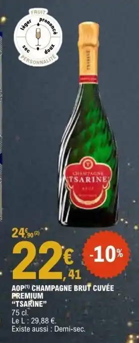 Actuellement en offre chez E.Leclerc : TSARINE Aop champagne brut cuvée premium ✅ Valable du 23-12 au 3-01.