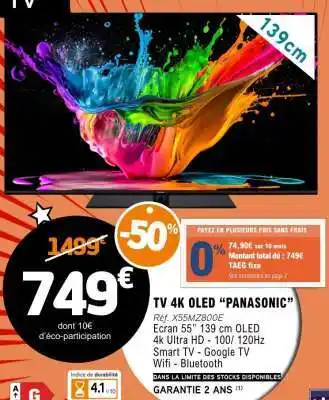 TV 4K OLED 'PANASONIC' offres et promotions en ligne chez E.Leclerc