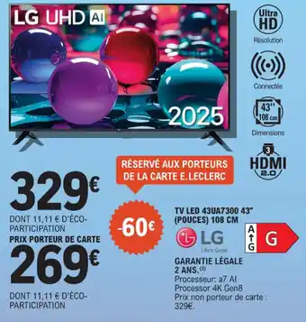 Actuellement en offre chez E.Leclerc : Tv led 43ua7300 43" pouces ✅ Valable du 3-02 au 14-02.