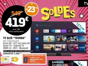 Actuellement en offre chez E.Leclerc : TV QLED 'TOSHIBA' ✅ Valable du 7-02 au 6-03.