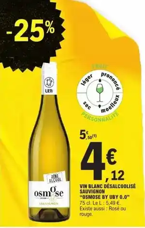 En plus de l'offre Uby - vin blanc dèsalcoolisé, E.Leclerc propose une large gamme de produits. Consultez le Catalogue E.Leclerc hebdomadaire pour découvrir les meilleures offres et promotions. En plus de Uby - vin blanc dèsalcoolisé, il y a aussi : VIN BLANC DÉSALCOOLISÉ SAUVIGNON 'OSMOSE BY UBY 0.0', OSMOSE BY UBY 0.0 Vin blanc désalcoolisé sauvignon & ACKERMAN Vin mousseux désalcoolisé blanc.