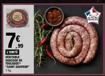 Actuellement en offre chez E.Leclerc : VÉRITABLE SAUCISSE DE TOULOUSE SAINT-SAUVEUR ✅ Valable du 20-01 au 31-01.