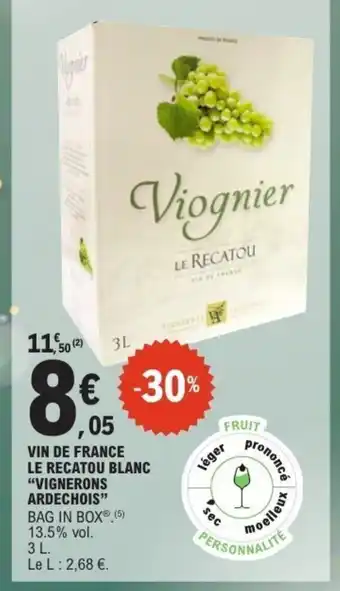 VIGNERONS ARDECHOIS Vin de france le recatou blanc : offres et promos E.Leclerc à découvrir