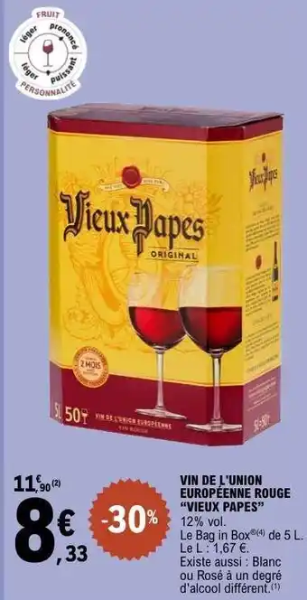 VIN DE L'UNION EUROPÉENNE ROUGE VIEUX PAPES : offres et promos E.Leclerc à découvrir