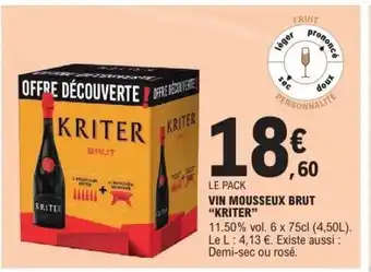 VIN MOUSSEUX BRUT KRITER : offres et promos E.Leclerc à découvrir