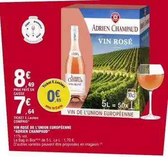 Vin Rosé de l'Union Européenne 'Adrien Champaud' : offres et promos E.Leclerc à découvrir