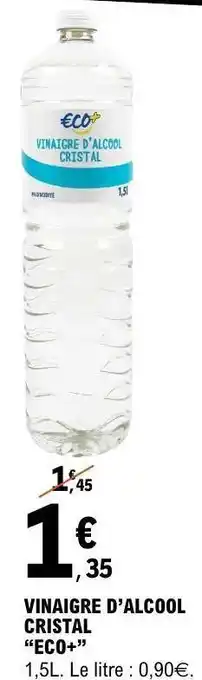 Actuellement en offre chez E.Leclerc : VINAIGRE D’ALCOOL CRISTAL “ECO+” ✅ Valable du 13-01 au 25-01.