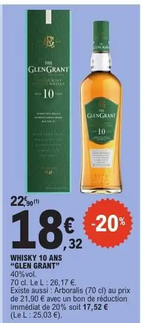 Actuellement en offre chez E.Leclerc : WHISKY 10 ANS GLEN GRANT ✅ Valable du 3-03 au 14-03.