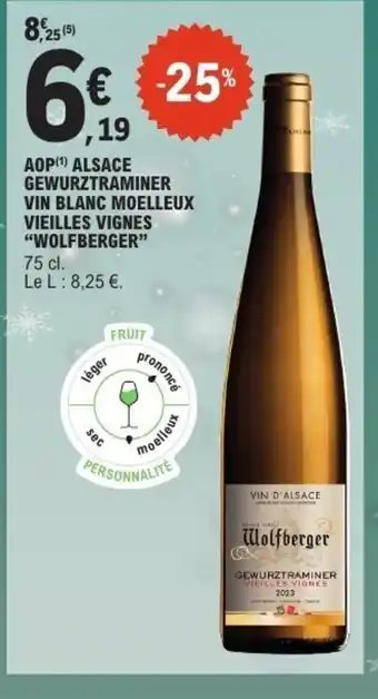 Actuellement en offre chez E.Leclerc : WOLFBERGER Aop alsace gewurztraminer vin blanc moelleux vieilles vignes ✅ Valable du 16-12 au 27-12.