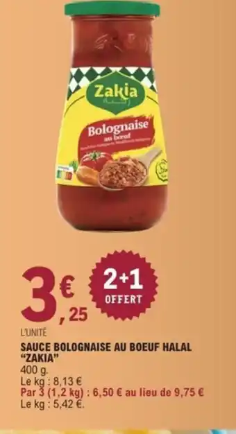 Actuellement en offre chez E.Leclerc : ZAKIA Sauce bolognaise au boeuf halal ✅ Valable du 3-02 au 21-02.